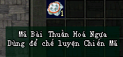 Nguyên Liệu : 5 mãnh ngựa + 2 Mã Bài Thuần Hóa Ngựa + 1500xu + 150 knb + 150 túi TK